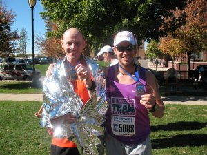 Matt finished his second marathon in 3:27 (12 1/2 minutes faster than his Flying Pig time)! We are SO proud of him! He finished 464 out of 3636 entrants putting him in the top 13% (our lucky number). We had a great time in Columbus with our neighbors Stuart and Melissa, and their daughters Emily and Lani (Stuart trained with Matt and also ran the marathon). Here are the pictures we have so far. We’ll update with more as we get them,