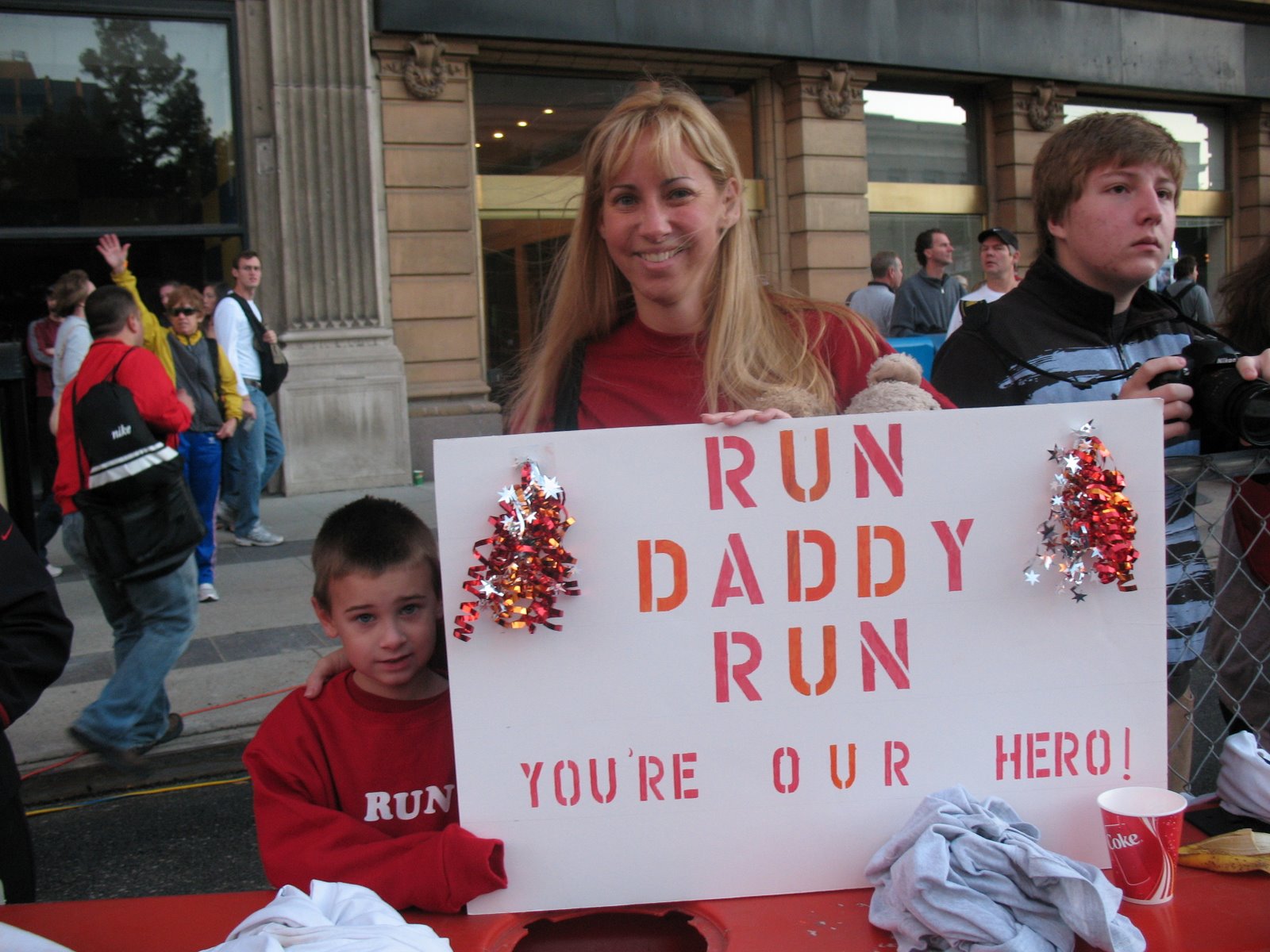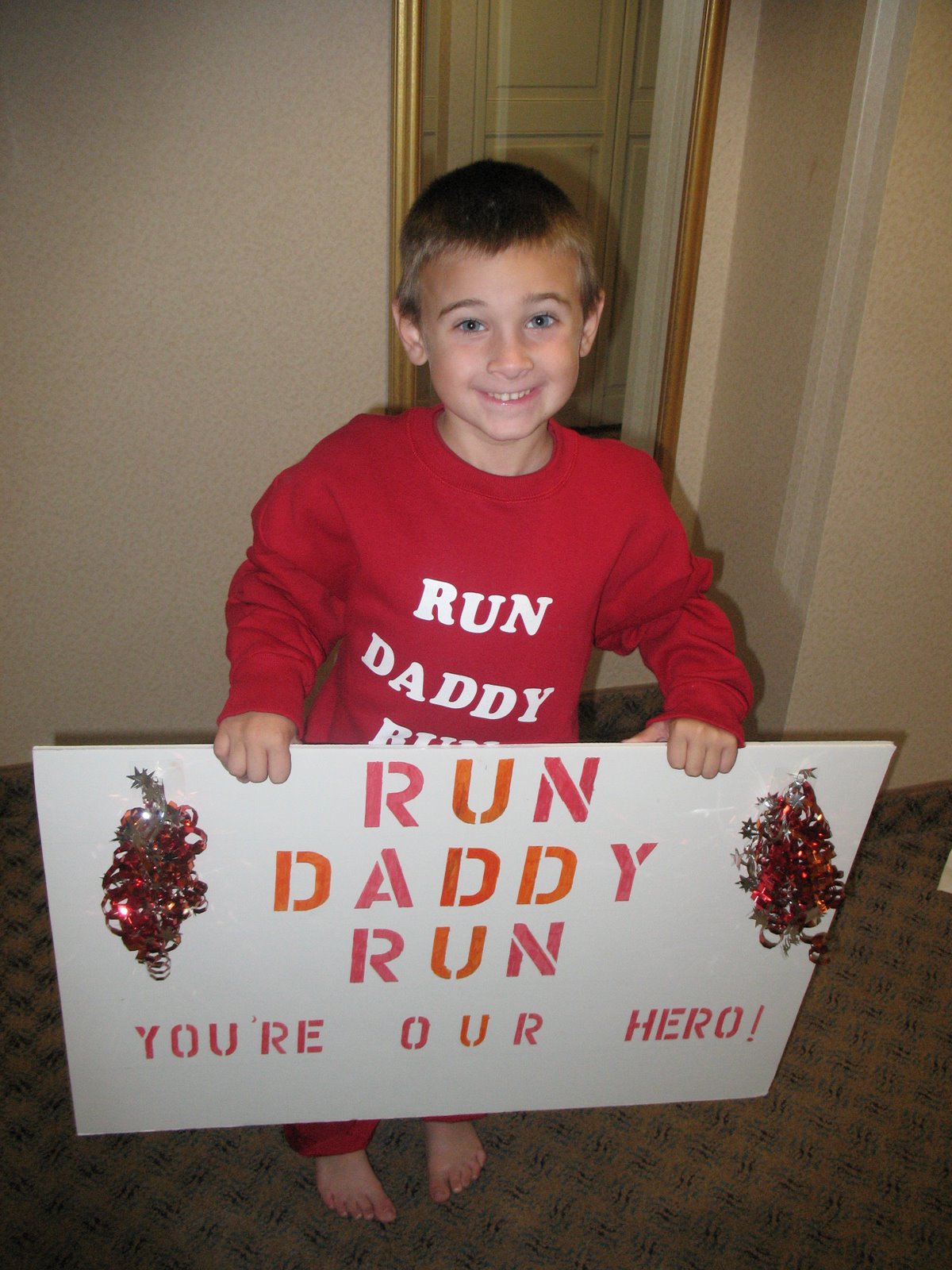 Tristan (and the sign we made for Daddy) before the race.