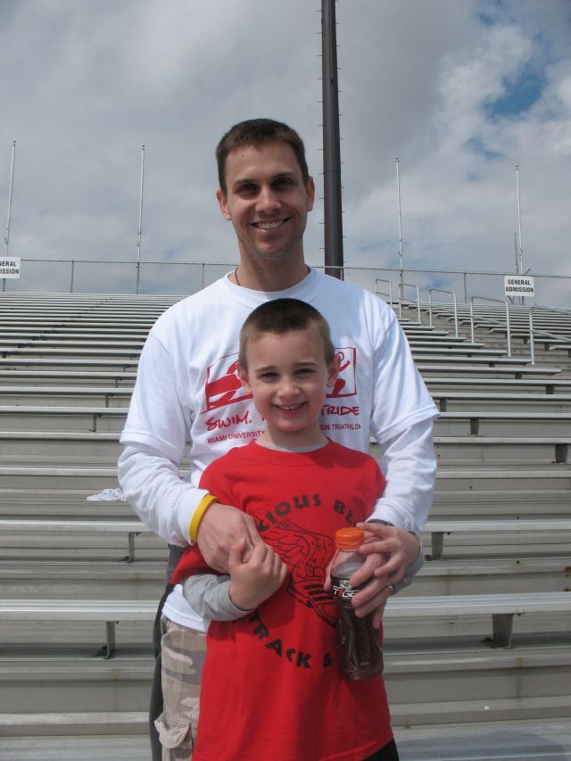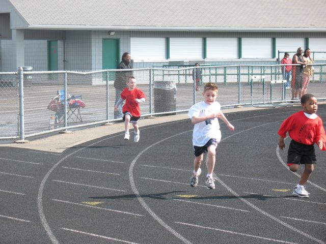 Tristan had his first track meet today and was fantastic! They don’t time them in his age group (they’re called Munchins… ages 3-8). His age group runs the 100, 200 and 400 meter races. Tristan really loves to run and is already very good (especially at longer distances), but I think he’ll someday be a really great runner just like Daddy! Tristan’s also playing t-ball but hasn’t had a game yet… look for pictures in May. He also wants to take tennis lessons but there aren’t any days left in the week so he’ll have to wait for that until track is over.