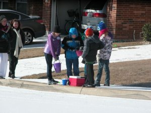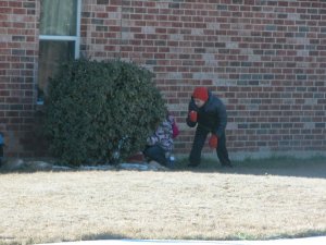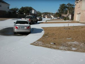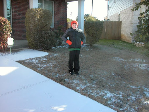To cap off his wonderful week, it began icing late Thursday night and I woke him at midnight when his school was cancelled for the next day. I’ve never seen such sweet, sleepy excitement! He was thrilled the next morning to wake up and see actual snow on the ground! Being from Ohio, I cringe even calling this snow…. this is what we refer to as a dusting. Needless to say, San Antonio isn’t equipped to deal with even a dusting and the ENTIRE city shut down!!! Including all the highways!!! I’ve never heard of such a thing!