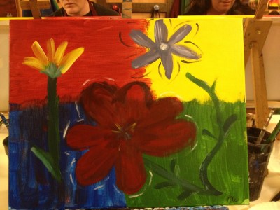 I think I may have mentioned that I’m a scosh OCD.  I stepped outside my comfort zone last night and tried something new … painting.  Not painting the house (which desperately needs to be done as all our rooms are builders beige because we still … after all this time … can’t decide on a color for any single room).  Help, Kim and Sherri!  I need your decorating expertise – come visit (ok, I really do, but I’m still secretly trying to get you both to come visit!).  Rather, Painting with a Twist is a 2 hour class where they teach even the most inept  (read ME) participants to recreate famous paintings.  The “twist” is that it’s BYOB.  I brought a bottle of wine and promptly proceeded to down approximately 1/4 glass (that was my entire consumption for the entire 2 hours.  I’m a cheap date).  Apparently, this wasn’t enough as the teacher kept coming by my canvas and, noticing my hesitance and grimaces over every perceived and real mistake, kept telling me that, “You need to drink more, honey!”