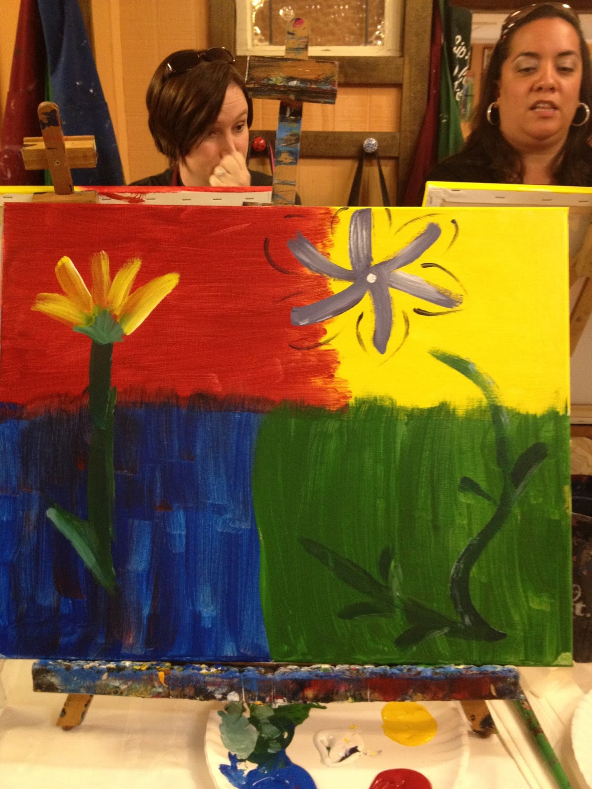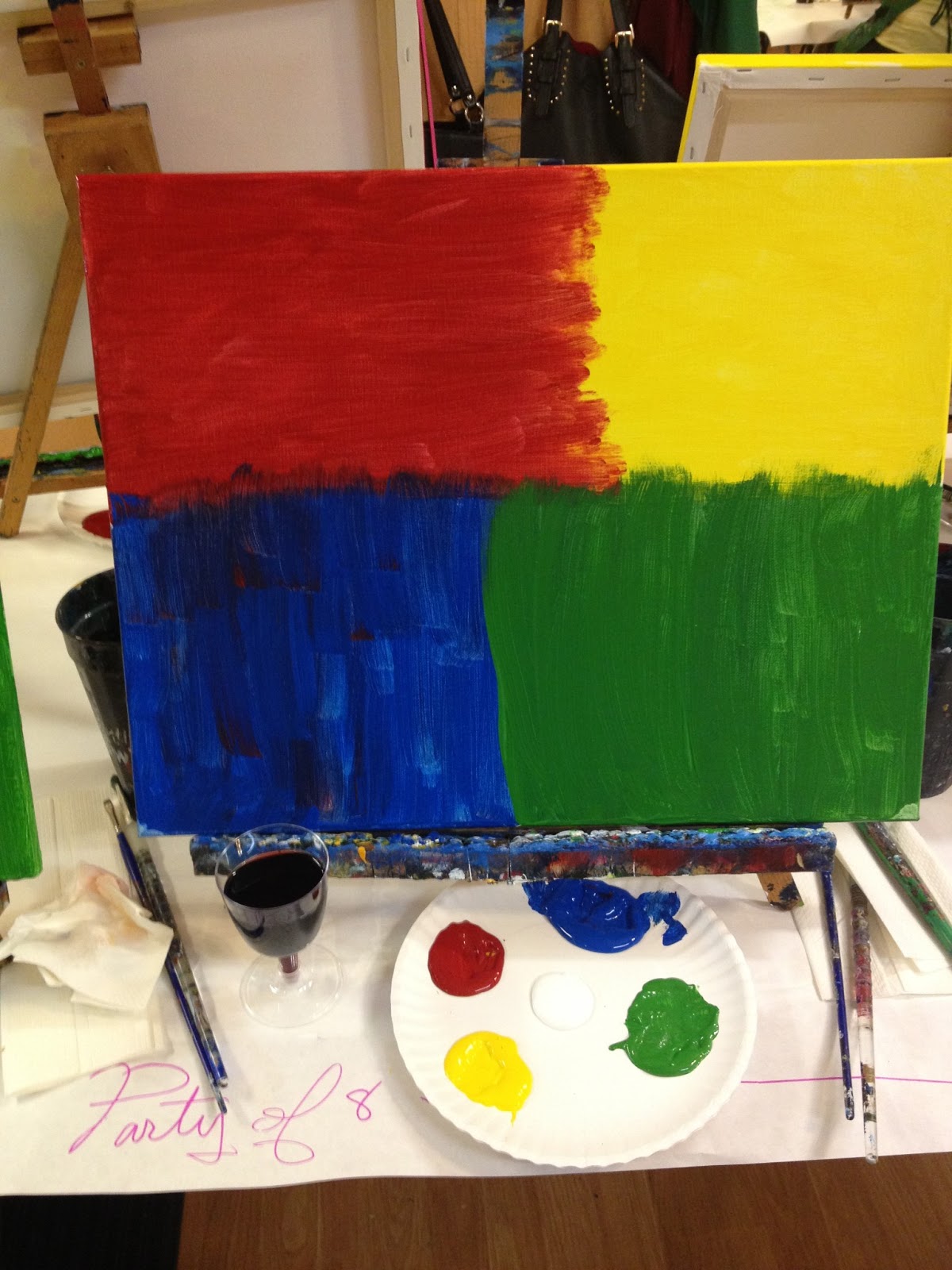 I think I may have mentioned that I’m a scosh OCD.  I stepped outside my comfort zone last night and tried something new … painting.  Not painting the house (which desperately needs to be done as all our rooms are builders beige because we still … after all this time … can’t decide on a color for any single room).  Help, Kim and Sherri!  I need your decorating expertise – come visit (ok, I really do, but I’m still secretly trying to get you both to come visit!).  Rather, Painting with a Twist is a 2 hour class where they teach even the most inept  (read ME) participants to recreate famous paintings.  The “twist” is that it’s BYOB.  I brought a bottle of wine and promptly proceeded to down approximately 1/4 glass (that was my entire consumption for the entire 2 hours.  I’m a cheap date).  Apparently, this wasn’t enough as the teacher kept coming by my canvas and, noticing my hesitance and grimaces over every perceived and real mistake, kept telling me that, “You need to drink more, honey!”