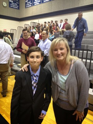Tristan was inducted into the National Junior Honor Society Monday, March 24. That date also happens to be Matt’s and my wedding anniversary … best gift ever. I don’t know how all chapters of NJHS work, but let me start from the beginning on Tristan’s journey into induction.