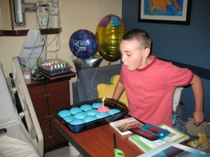 Now on to the my older “baby.” Baby B had a good day at the hospital today (I know…. it’s an oxymoron). His white blood cell counts continued to come down. They’re at 12.5 today. 5-10 is normal, he was at 23 when admitted and was at 15 yesterday, so 12.5 is a great number!! He was also afebrile for the last 24 hours! We celebrated Baby T’s birthday at the hospital and although still in a lot of pain, Baby B was awake, engaged, and more like my Boo. He actually ate a cupcake today, and drank some ensure and carnation instant breakfast. We just have to get his appetite back and work on bringing him home! I’ve bribed him with everything I can think of and finally struck on Outback. So we will be going to Outback to celebrate when his appetite returns and he’s released. Thank you all for your continued love, messages, and prayers! They mean the world to us and are definitely helping us as we walk through this difficult time.